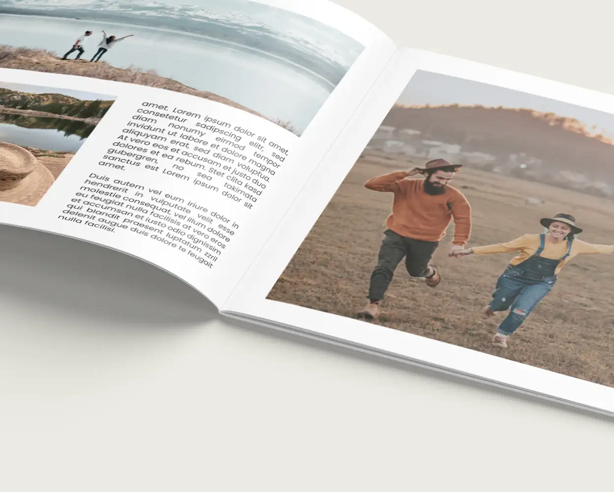 Das Fotoheft – auch als Booklet bekannt – ist die günstigste und kompakteste Möglichkeit, Ihre Bilder in hochwertiger Druckqualität nachaltig zu präsentieren. Durch die Rückstichheftung lassen sich die Seiten vollständig aufschlagen, wodurch auch seitenübergreifende Motive perfekt zur Geltung kommen.