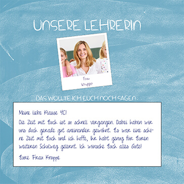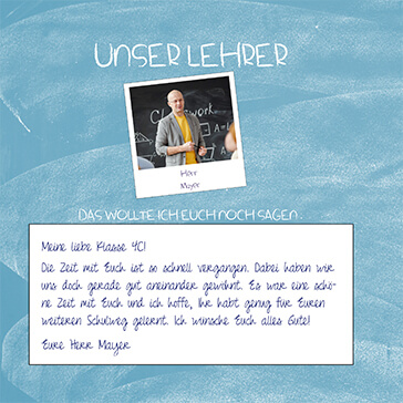 NEU: Wir bieten jetzt auch Abschluss-Shirts für die ganze Klasse an, die Sie optional nach Erhalt Ihrer Vorlagen zusammen mit den Büchern bestellen können. Weitere Informationen finden Sie in unserer Info-Broschüre.